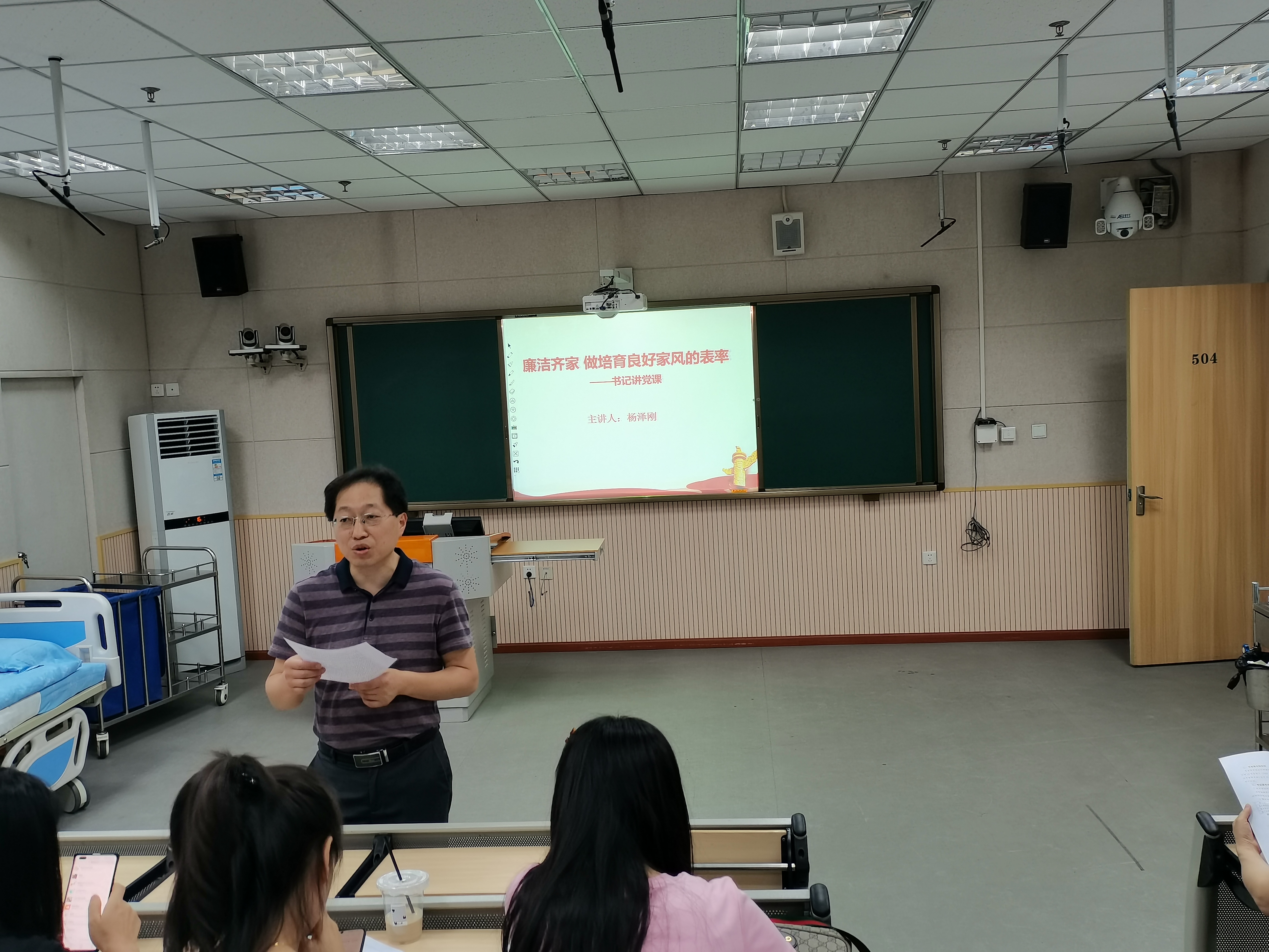 6月21日下午,护理公司党总支书记杨泽刚在青年路校区实训楼504教室为太阳成集团tyc122cc全体教职工开展了主题为《廉洁齐家 做培育良好家风的表率》的专题党课。