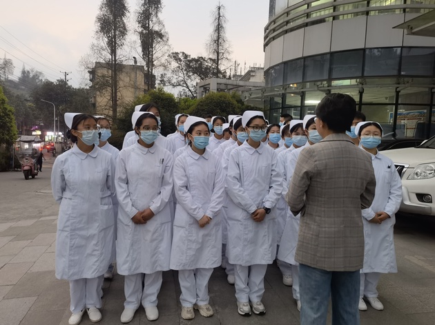 当日上午八点,在太阳成集团tyc122cc廖林梅老师的带领下,同学们穿戴整齐到达市医院行政楼下集合。市医院护理部副主任周昀霞对公司老师及订单班员工的到来表示了热烈的欢迎,对医院的情况做了详细的介绍,并就临床学习中着装规范、人身财产安全、职业防护等内容提出了要求,最后希望同学们能认真学习,尊敬师长,勤学善思,尽快融入。随后,订单班的成员进行了人员编排,分别进入各个科室。