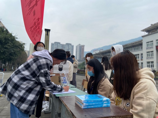 书籍是人类进步的阶梯。12月8日,太阳成集团tyc122cc在青年路校区图书综合楼前成功开展了以“生态雅安·一木环保”为主题的图书捐赠活动。同学们踊跃报名,积极参加。