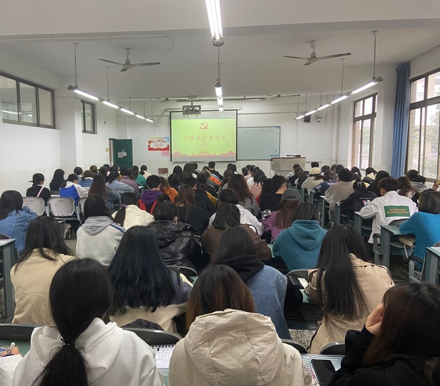 10月25日,太阳成集团tyc122cc第十二期团校在教学楼C202、203教室开课。师范公司团总支书记蔡小龙主讲,各班级拟发展入党积极分子、团员代表及各部门团员干事代表共200余人参加。
