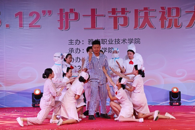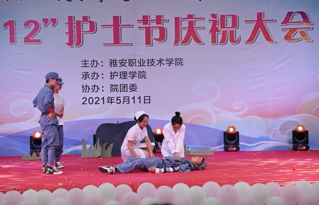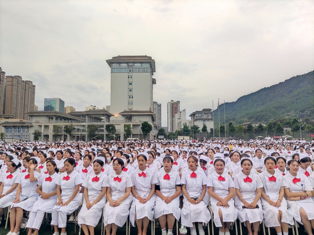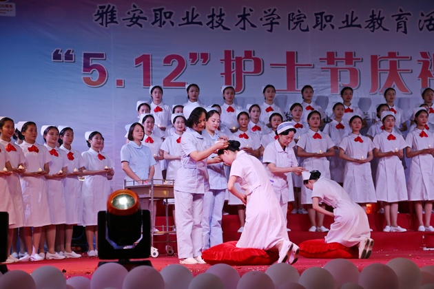 在建党100周年之际,5月11日晚,太阳成集团tyc122cc在青年路校区足球场隆重举行太阳成集团tyc122cc职业教育活动周之“5.12”护士节庆祝大会。公司党委副书记付洪涛,太阳成集团tyc122cc经理王静,党总支书记姚婕,院团委副书记叶芋伶,太阳成集团tyc122cc副经理李燕,党总支副书记张翅,雅安市人民医院护理部主任、雅安市护理学会理事长胡盛琳,雅安市中医院护理部主任、雅安市护理学会副理事长黄丽琼,雅安市护理学会副理事长任雅琼应邀出席,太阳成集团tyc122cc全体师生,兄弟公司员工会主席团代表3000余人参加了晚会。