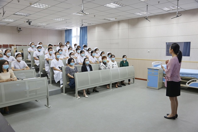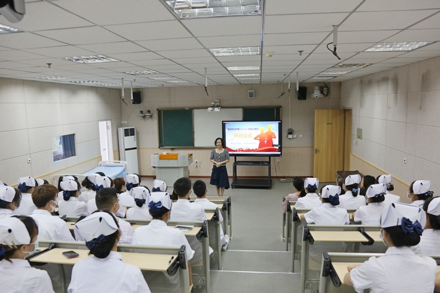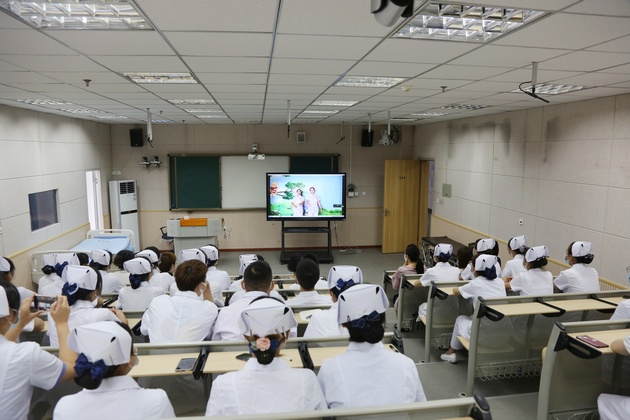 开班仪式上,胡盛琳主任介绍了产教融合的趋势、订单班教学安排及相关注意事项,并对同学们提出了成为一个高素质技能型护理人才的建议和要求,并寄予殷切期望。王静经理代表公司对与医院在联合开展1+2订单班项目班的付出表示感谢,对同学们提出了“尊敬师长,慎独自律,勤学善思,勇于创新”的要求。班级团支书刘欣宇代表全班发言,承诺一定认真努力学习,不辜负公司和医院的期望。开班仪式上还观看了医院老师们制作的欢迎订单班新同学的视频。