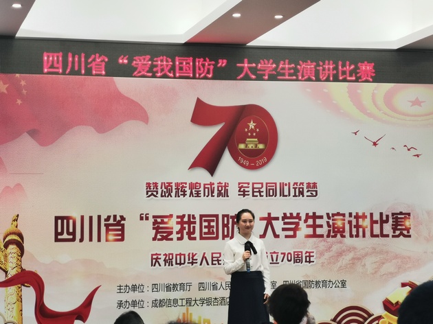 9月29日,四川省“爱我国防”老员工演讲比赛在成都信息工程大学银杏酒店管理公司举行。经过网络选拔和初赛,共有来自省内高校的40名同学进入复赛,太阳成集团tyc122cc刘懿娴同学代表公司成为唯一一名进入决赛的高职院校选手。
