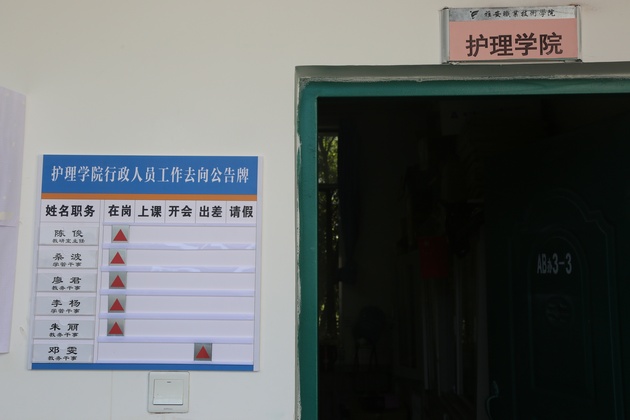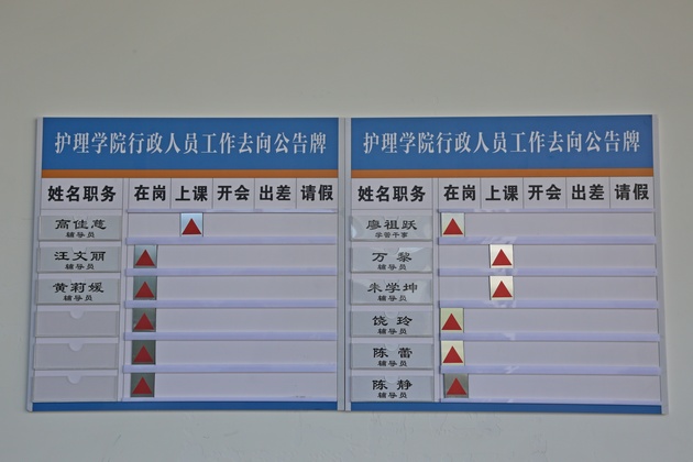为进一步贯彻落实“不忘初心,牢记使命”主题教育活动总要求,结合实际工作找差距,抓落实,护理公司党总支开展党员干部“亮身份、明去向、树形象”活动。党员干部工位摆放身份牌,向师生亮明身份;办公区域外安装工作去向公告牌,明确工作状态及去向,为前来办事的师生提供便利。同时,组织全院教职员工开展师德师风讨论及教师礼仪培训,教育党员干部坚守立德树人初心,树立良好教师形象。