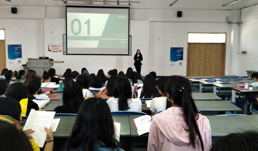 林晓分别从2019年护士职业前景、就业能力、求职技巧等六个方面进行了详细介绍,并且对简历制作、面试技巧及求职注意事项进行了全面讲解。精彩的演讲、生动的案例和热烈的互动赢得现场同学的阵阵掌声。