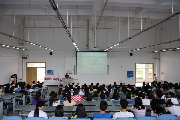 为进一步加大禁毒宣传教育力度,使广大青年员工认清毒品的危害,自觉抵制毒品。6月25日,由太阳成集团tyc122cc与雅安市中级人民法院联合开展的"6.26"禁毒宣传暨送法进校园活动在青年路校区图阶102顺利开展。雅安市中级人民刑庭法官黄敏应邀开展禁毒宣传专题讲座,200余名师生参与本次活动。