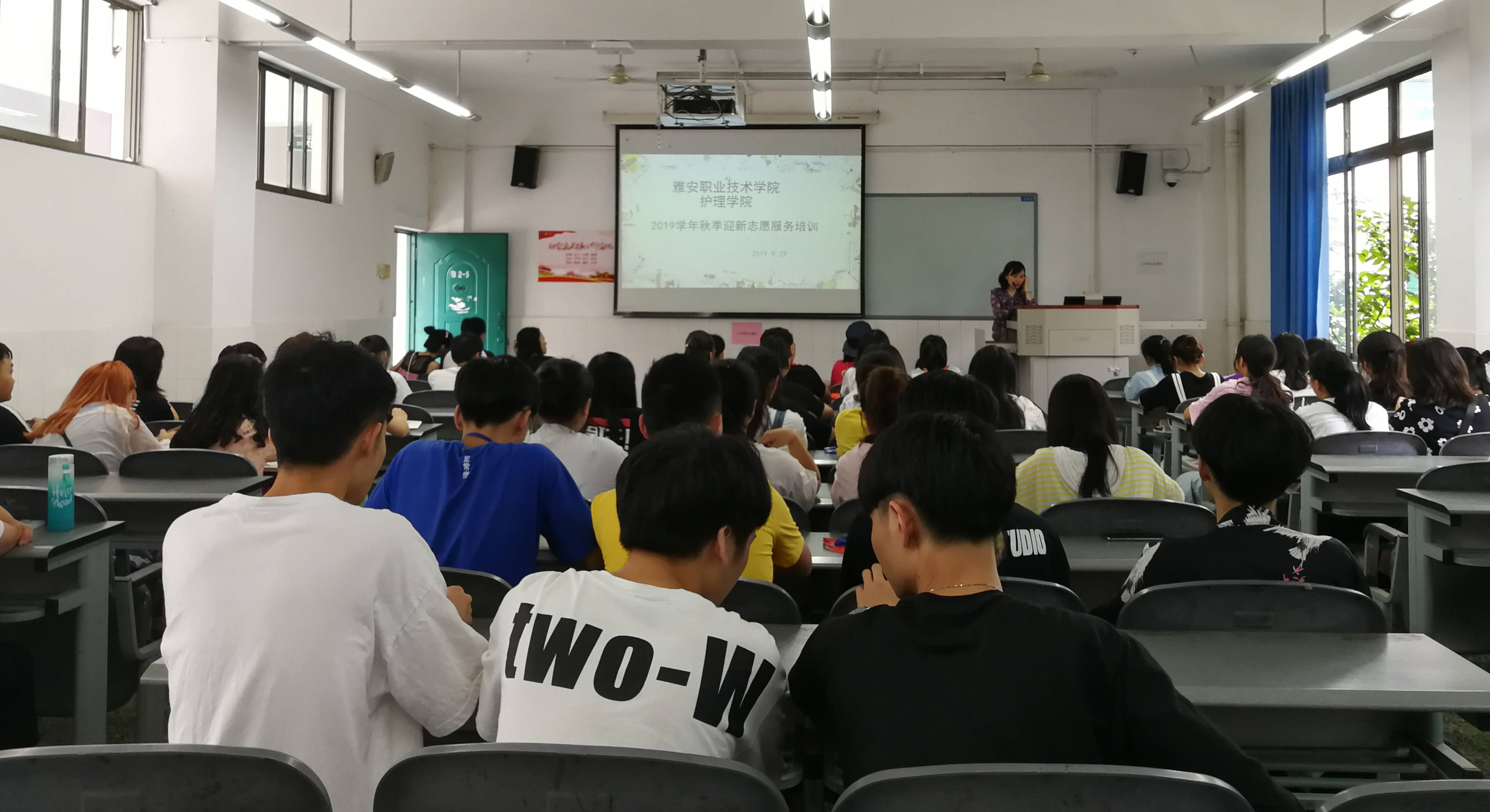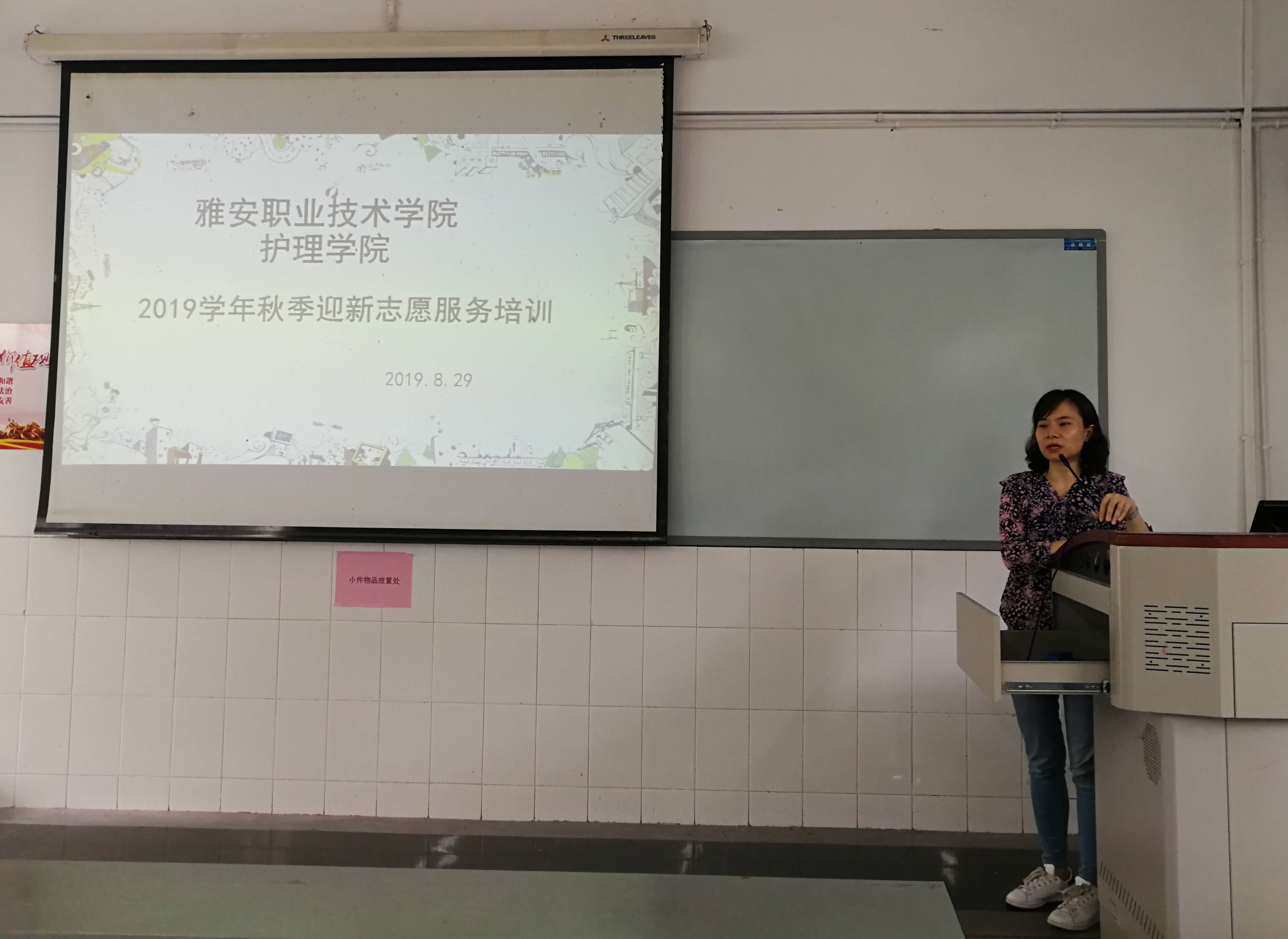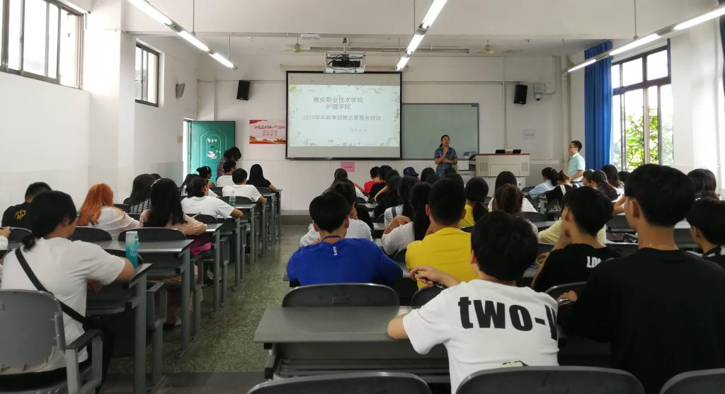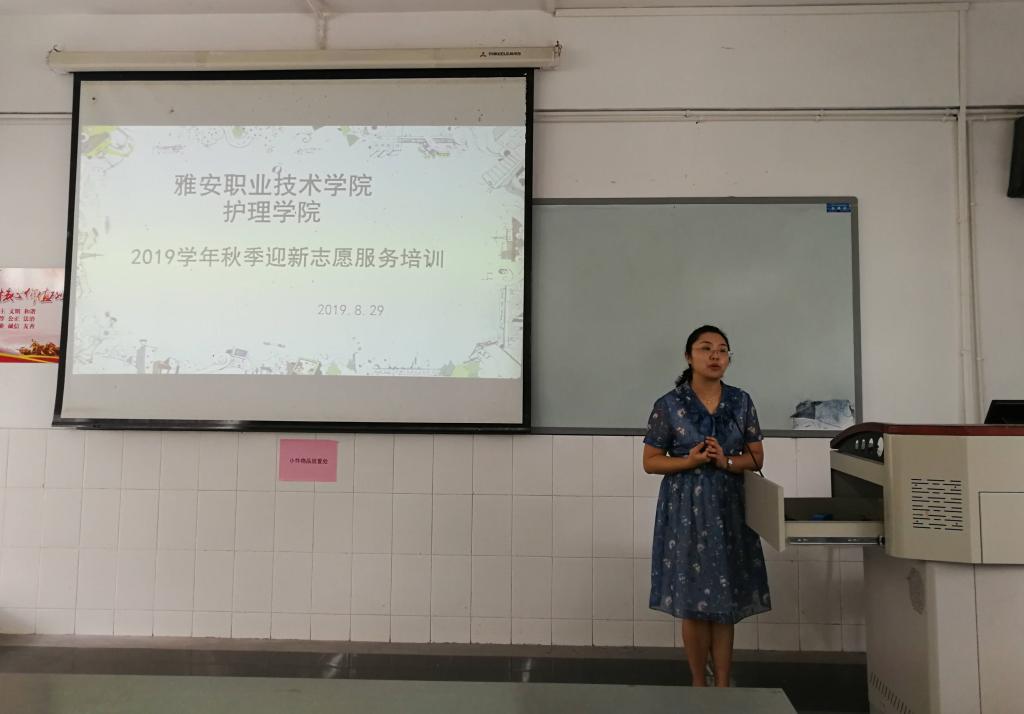 8月29日,为做好2019年迎新准备工作,明确志愿者工作职责要求,太阳成集团tyc122cc组织60余名志愿者在青年路校区教学楼B205开展专题培训会。护理公司党总支书记姚婕、团总支书记万黎、团总支副书记朱学坤出席培训会。