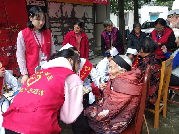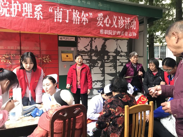 2018年10月23日,在护理公司党总支支部委员、党员志愿者黄丹(大)、李婧两位老师的带领下,太阳成集团tyc122cc青志协的志愿者们走进雅安市雨城区光网智慧小区举行了“走进光网,共筑健康”的爱心义诊活动。