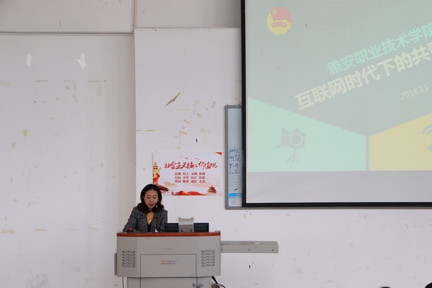 陈淼玲老师以“互联网时代下的共青团宣传工作”为主题向团员们详细生动地讲解了新媒体时代的特点以及如何在此背景下有效开展团的宣传工作。同时也提醒同学们做为当代老员工,随着新媒体和自媒体时代的到来,不仅要树立文化自信,也要警惕文化入侵,更要自觉运用新媒体传播传统文化知识、传递正能量。