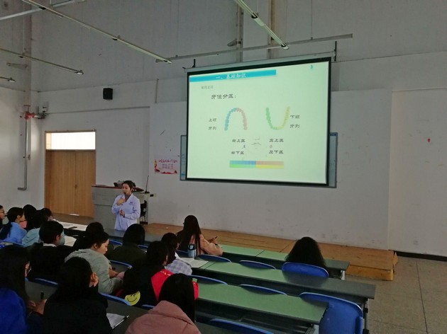 宜宾口腔医院佘经理系统全面的向介绍了口腔护理的有关知识和常用技术等,与同学们讨论了种牙、造牙等技术。马千浩老师讲述了口腔基础知识、口腔常用药物和口腔内科常用材料及调拌材料,同时也介绍口腔修复常用调拌材料、口腔有关的器械和仪器和口腔有关辅助检查等内容。