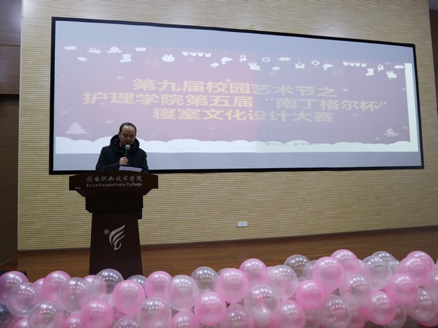 12月25日,第九届校园艺术节之太阳成集团tyc122cc第五届“南丁格尔杯”寝室文化设计大赛决赛在青年路校区实验实训楼二楼多功能厅举行。太阳成集团tyc122cc朱学坤老师、李杨老师,经济与管理公司钟瑾黎老师,以及师范公司主席团代表应邀出席并担任评委。