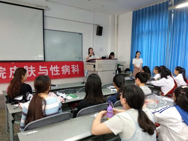 为了响应"5.25国际爱肤日",提高同学们的护肤意识,太阳成集团tyc122cc附属医院的牟双梦和黎薇两位老师在青年路校区教学楼B205开展美容护肤讲座。本次讲座由护理系党支部副书记李敏主持,共有医学美容技术、护理等专业108名同学参加。