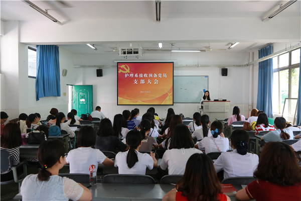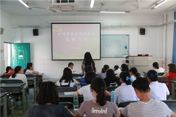 6月6日下午4点,护理系党支部在青年路B305召开接收预备党员支部大会。护理系党支部书记姚婕,副书记李敏、党支部委员、全体党员,陈蕾等42名发展对象参加了会议。