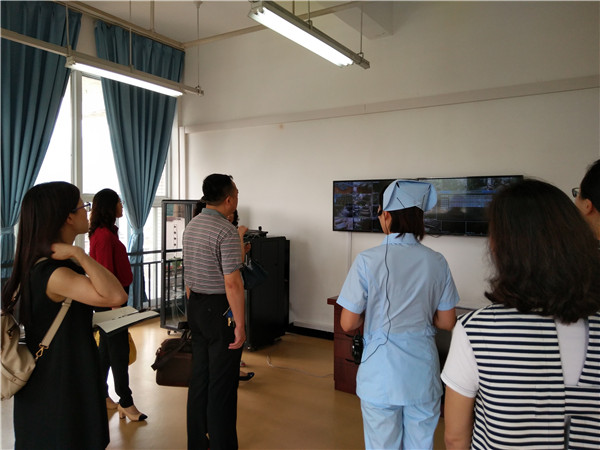 各位领导首先参观了护理实训中心,由于对护理专业实训建设的浓厚兴趣,王静主任详细汇报了我系实训实验建设成果。并安排了座谈环节,两院教师针对实训中心建设、实验教学方法、实验室人员配备及实验室管理的经验进行交流分享。