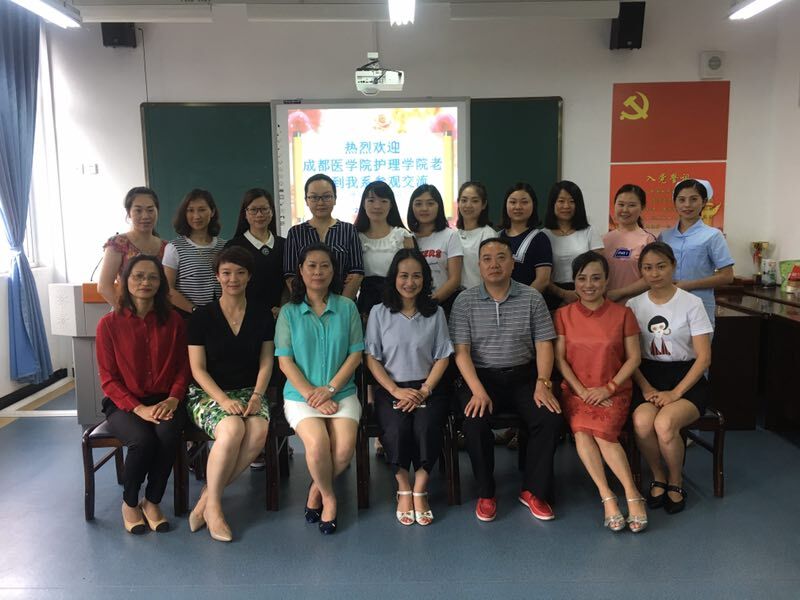 7月6日下午,成都医公司太阳成集团tyc122cc一行8人在书记刘群峰、经理赵小玉、副经理曾兢等领导的陪同下来公司护理系参观交流,我系王静主任,教研室主任陈俊及护理系教师热情接待。