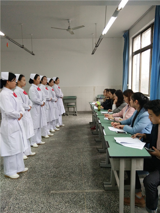 护理系教师谢琳娜、主席团成员、女工部部长与礼仪队队长出席本次并担任此次活动的评委 。本次选拔对象主要为三年制的各位同学,选手们分小组有序进场,依次进行自我介绍,并按照评委要求进行礼仪展示。选手们现场表现从容,将护士的端庄大方、举止优雅展现的淋漓尽致。比赛结束后,评委对选手的表现给予表扬,同时也指出他们的不足之处。