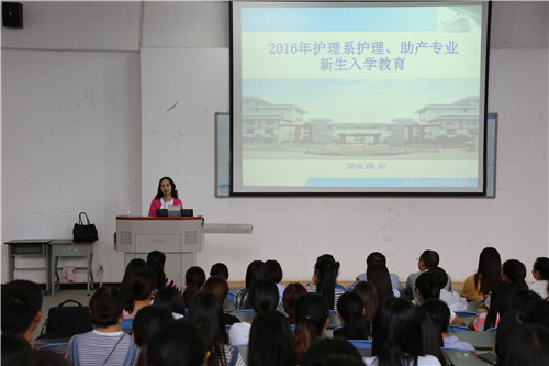 为帮助我系2016级新生尽快了解所学专业,适应新的学习和生活,使他们在新的环境里健康成长,顺利完成学业。我系分别于9月7日下午两点半在青年路图阶101.102,9月8日上午10点在实训楼504举行了护理、助产和医学美容专业新生入学教育大会;护理系主任王静、党支部副书记李敏、教研室主任、教学干事、学管干事、新生辅导员班主任和全系共计近600名新生参加会议。
