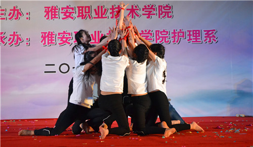 在一片欢呼声和掌声中,迎来了同学们的精彩文艺表演。令人陶醉的民族舞《七月火把节》、壮族舞,神秘优雅、热情火辣的印度舞、拉丁舞,激情四射的街舞《爱投罗网》,不同风格舞蹈的完美结合掀起了阵阵热潮。由护理系员工会带来的影子剧《阳光在路上》、小品《小人舞》更是新意迭出,令人感动不已。其间,青春靓丽的白衣天使,步履款款,规范得体的形体语言展示着护士良好的礼仪修养,给现场吹来一股清爽的风。传光授帽仪式上,护理前辈们满怀深情与期望地为员工代表戴上圣洁的燕尾帽,全体同学手捧蜡烛合唱《让世界充满爱》,庄严神圣的氛围中,护理职业崇高和伟大的精神萦绕在现场每一个人的心中。最后,晚会在歌曲《一首写给雅安的歌》悠扬的歌声中画上完美的句号。