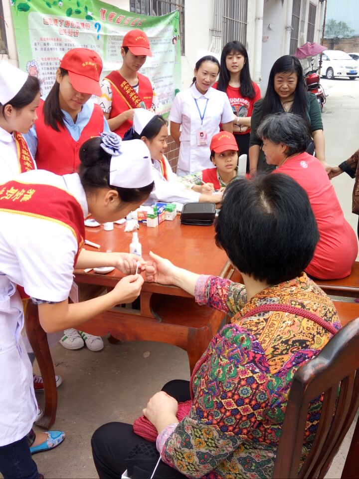 活动现场“青春是我们的名片,服务是我们的志愿”的标语非常显眼,彰显青年志愿者的服务精神。志愿者们为老人们测血糖、量血压,帮助身体不便的老人打扫家庭卫生等。志愿者们对血压血糖偏高的老人们进行了耐心地健康知识介绍和疾病预防措施。