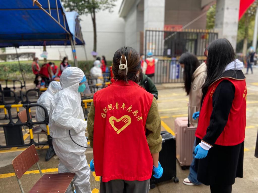新生们陆续到达校园,为确保新生顺利办理入学手续,采取“一站式”报到服务,志愿者们积极帮助新生托运、暂管行李,新生在进校检查健康码,学习通返校申请,入校核酸检测等防疫措施后,志愿者引领她们到所在公司报道处进行线下报道,后又将同学们依次带入寝室,给新生同学提供了便捷和热情周到的服务。