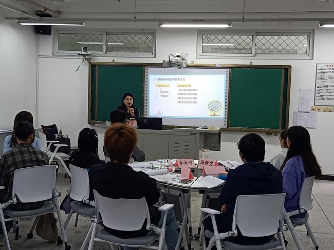 讲座上中,邓美东对课程大纲进行解析,并讲述自己积极投身扶贫事业十余年的创业经历。邓老师建设家乡的创业决心、带领贫困户脱贫的创业经验、助力乡村振兴的创业精神赢得了同学们热烈掌声。高晓明则通过生动案例,告知同学们要深刻认识创业能力的重要性,树立正确的创新创业观念,培养良好的创新思维和解决问题的能力,为社会作出自己的贡献。