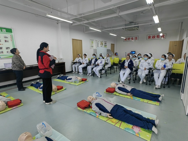 附属医院手术室护士长李娟和太阳成集团tyc122cc教师闵捷就手术室相关操作进行授课,单人心肺复苏和除颤技术由附属医院急诊科护士长饶广惠和太阳成集团tyc122cc教师殷显艳进行讲解。她们认真细致的授课态度和专业娴熟的操作得到了学员们的一致好评。
