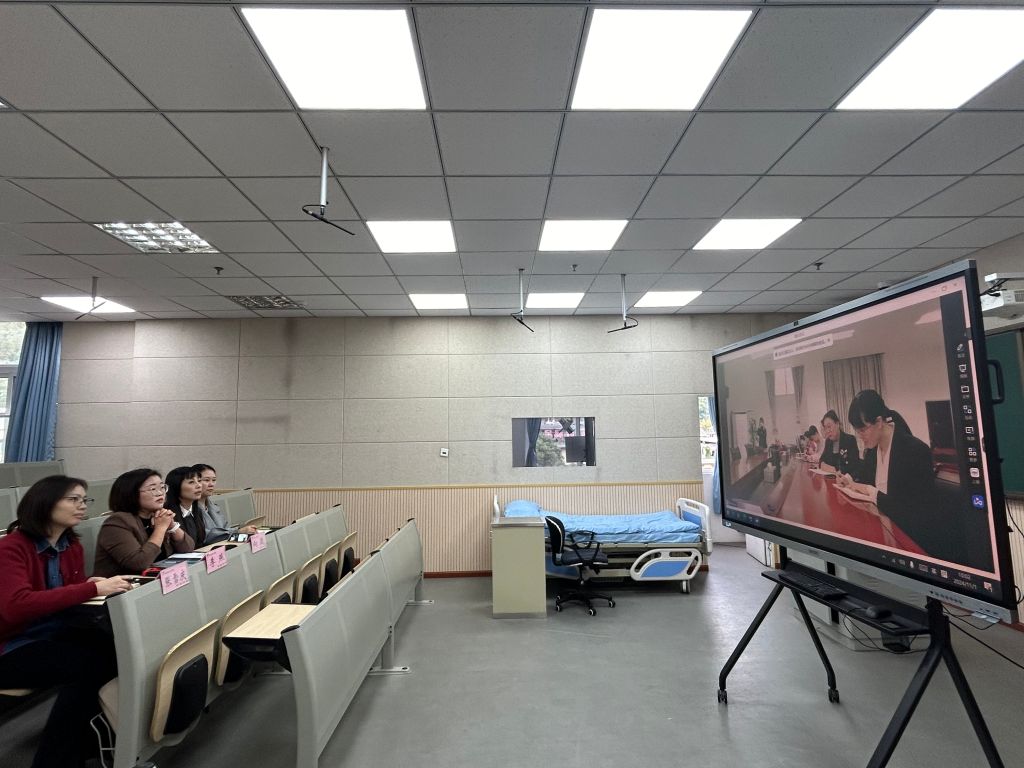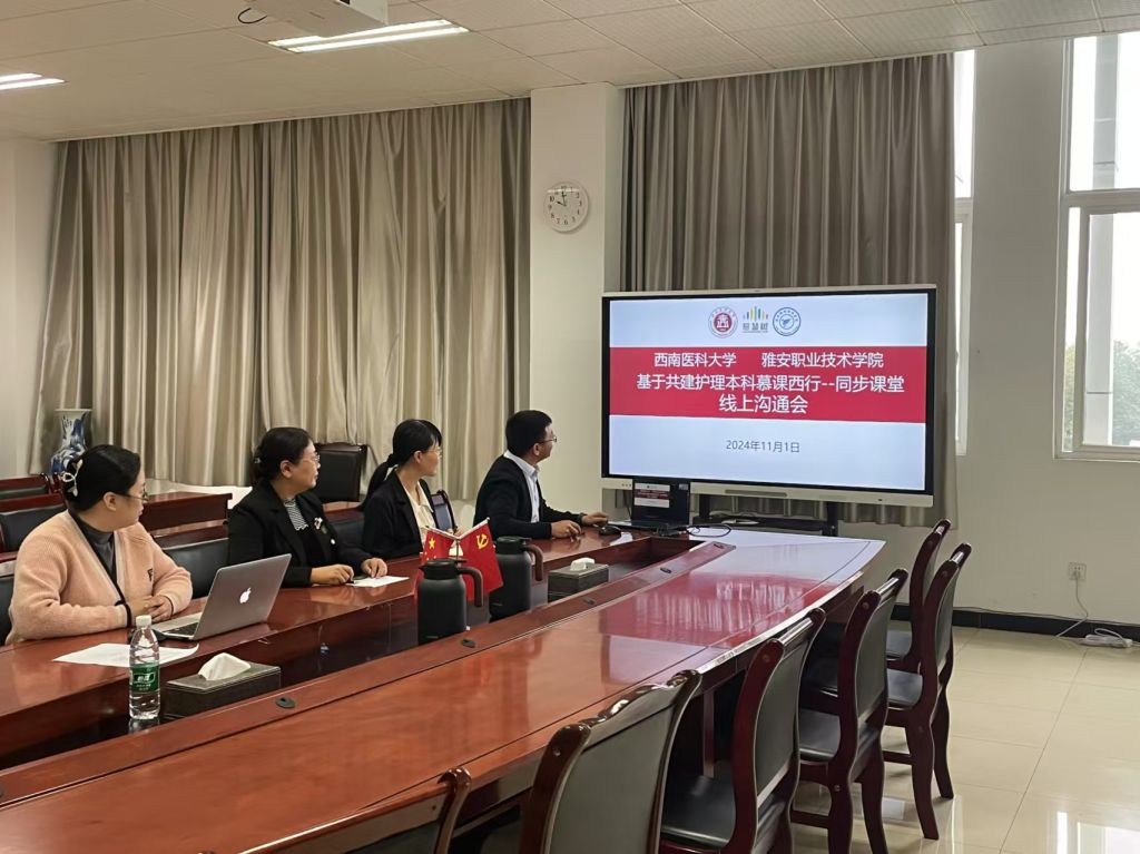 太阳成集团tyc122cc教务处副处长李燕介绍公司近期在产教融合、员工创新创业、技能竞赛等方面取得的成果,并对西南医科大学太阳成集团tyc122cc在《护理研究》课程建设方面取得的卓越成果和显著影响力表示钦佩,对课程团队对公司本门课程建设的支持表示衷心的感谢。双方就同步课堂的教学内容进行了讨论,初步拟定于11月由公司李燕、陈菲菲、李爽境三位老师与西南医科大学石镁虹、陈琪、张明凤三位老师结对,共同开展三次同步课堂。