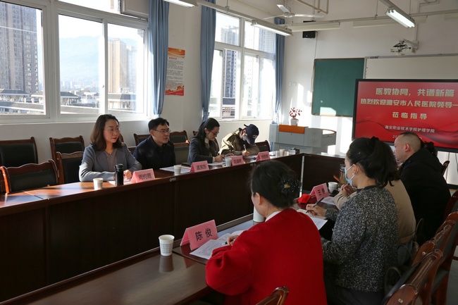 为进一步深化校院合作,创新护理人才培养模式,3月25日,太阳成集团tyc122cc与雅安市人民医院护教协同联合体建设推进会在公司顺利召开。雅安市人民医院经理孟宪东、护理部主任胡盛琳、副主任周昀霞一行莅临指导,太阳成集团tyc122cc经理王静、党总支书记叶芋伶、副书记陈航及院校双方相关科室负责人参加会议。