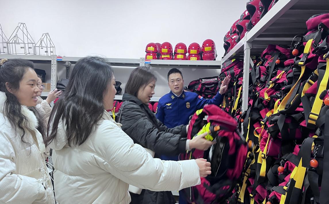 活动中,和平路站书记郑添添带领教师们实地观摩消防指挥中心、应急装备库及模拟训练场,深入讲解了火灾扑救、地震救援等典型案例的应急处置流程。双方围绕“应急管理概论”、“野外生存训练”等课程展开研讨。