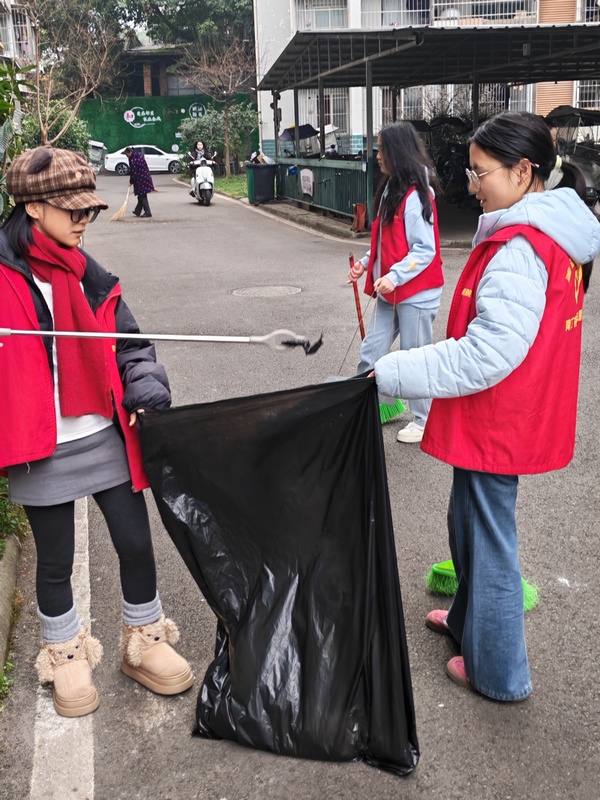 活动中,党员教师率先垂范,员工志愿者积极跟进,将专业所学转化为服务实践。大家手持清洁工具,对社区大院、主要道路及绿化带进行全面清扫,不遗漏一处卫生死角,累计清理并转运杂物2袋,社区环境焕然一新。同时,在社区“爱心驿站”值班的志愿者主动配合工作人员,为群众提供贴心帮助与健康支持,使驿站真正成为居民“家门口的健康服务站”,受到社区群众广泛好评。