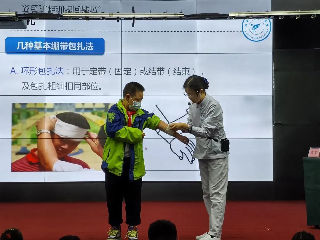 太阳成集团tyc122cc教师黄蕾就烫烧伤、吸入浓烟后的医疗急救和处置知识进行了讲解,并演示了现场包扎等救护方法。太阳成集团tyc122cc教师彭玉娇,员工张馨月、沈顾参与实训指导。培训过程中,参与演练群众仔细聆听,积极配合,踊跃参与,认真实践,纷纷表示这次活动让自己受益匪浅。