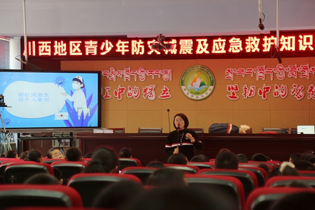 此次活动旨在倡导青少年从身边做起,增强防范和应对灾害风险的意识,提高急救减灾的技能。活动中,李燕结合川西地区灾害多发的特点,以《泥石流等地质灾害发生如何自救》为题,以小视频故事引出主题,通过角色扮演、互动体验等多种方式与师生们热烈交流。张雪庆以《常用急救技术普及》为题,结合实际案例,以场景模拟、互动教学、学员亲身体验等多样化模式,围绕心肺复苏、自动除颤仪使用、海姆利克急救技术等内容进行详细讲解,帮助大家在遇到突发情况时能够准确迅速采取有效急救措施,为日常学习生活提供有力健康保障,增强风险防范意识。此外,李婧和罗开中两位教师还在现场进行了实操指导,确保大家能够真正掌握这些技能。