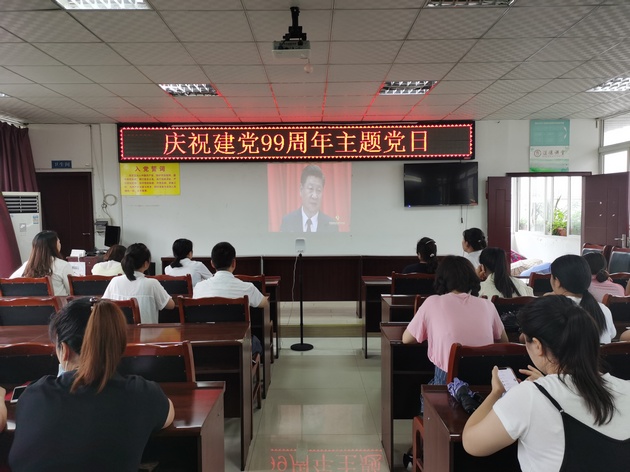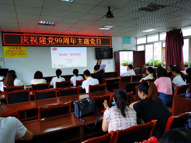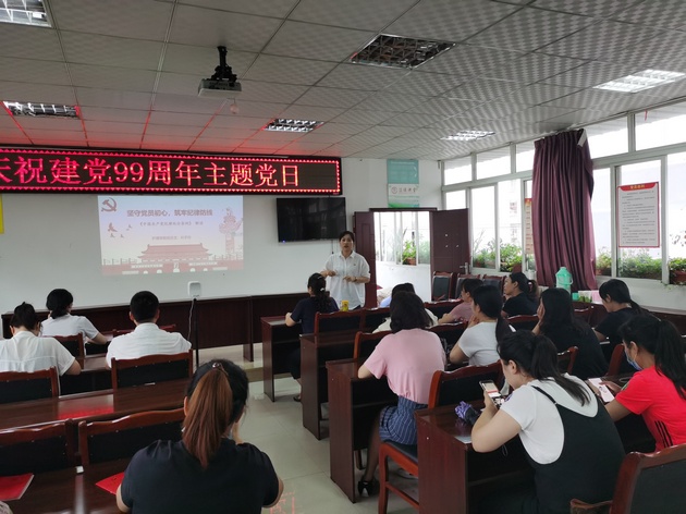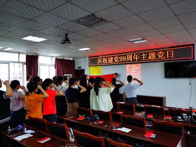 首先,由刘忠建传达《中共雅安市委组织部关于开展庆祝建党99周年活动的通知》文件精神,提出活动要求。随后,由姚婕领誓,带领新党员宣誓,老党员重温入党誓词。接下来,姚婕、叶芋伶分别以“坚定信仰,做合格党员”“坚守党员初心,筑牢纪律防线”为主题给党员们上党课,进行理想信念和党规党纪教育。最后党员们结合童朝辉同志事迹进行讨论分享,大家纷纷表示要坚定理想信念,守住党员初心,立足岗位职责,积极主动作为,起好党员的先锋模范带头作用。