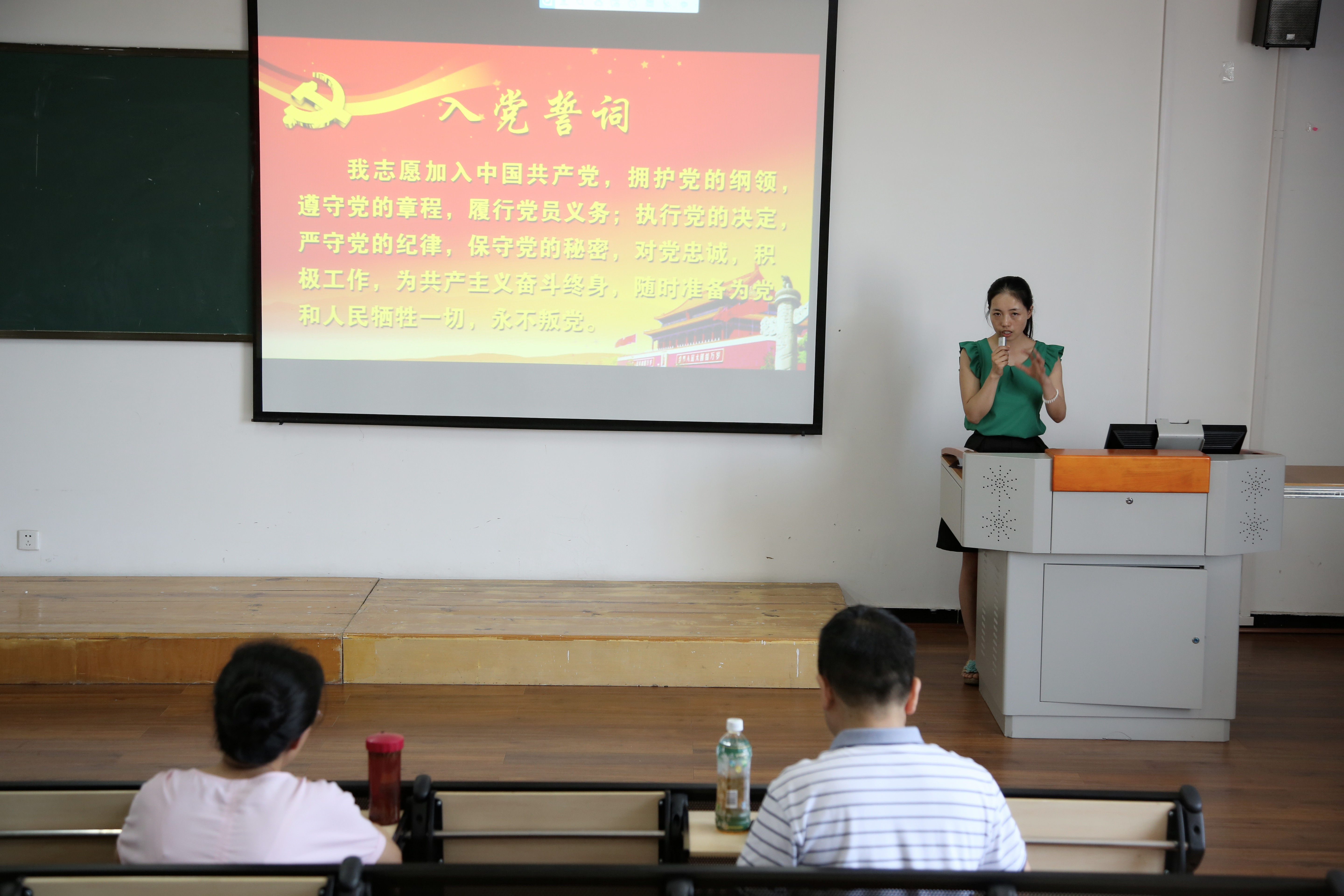 为庆祝中国共产党成立95周年,进一步增强广大党员干部的党性修养,按照公司“两学一做”学习教育安排部署,6月7日,护理系党支部组织全体党员和预备党员在青年路实训楼506举行了“重温入党志愿,重温入党誓词”主题党日活动。