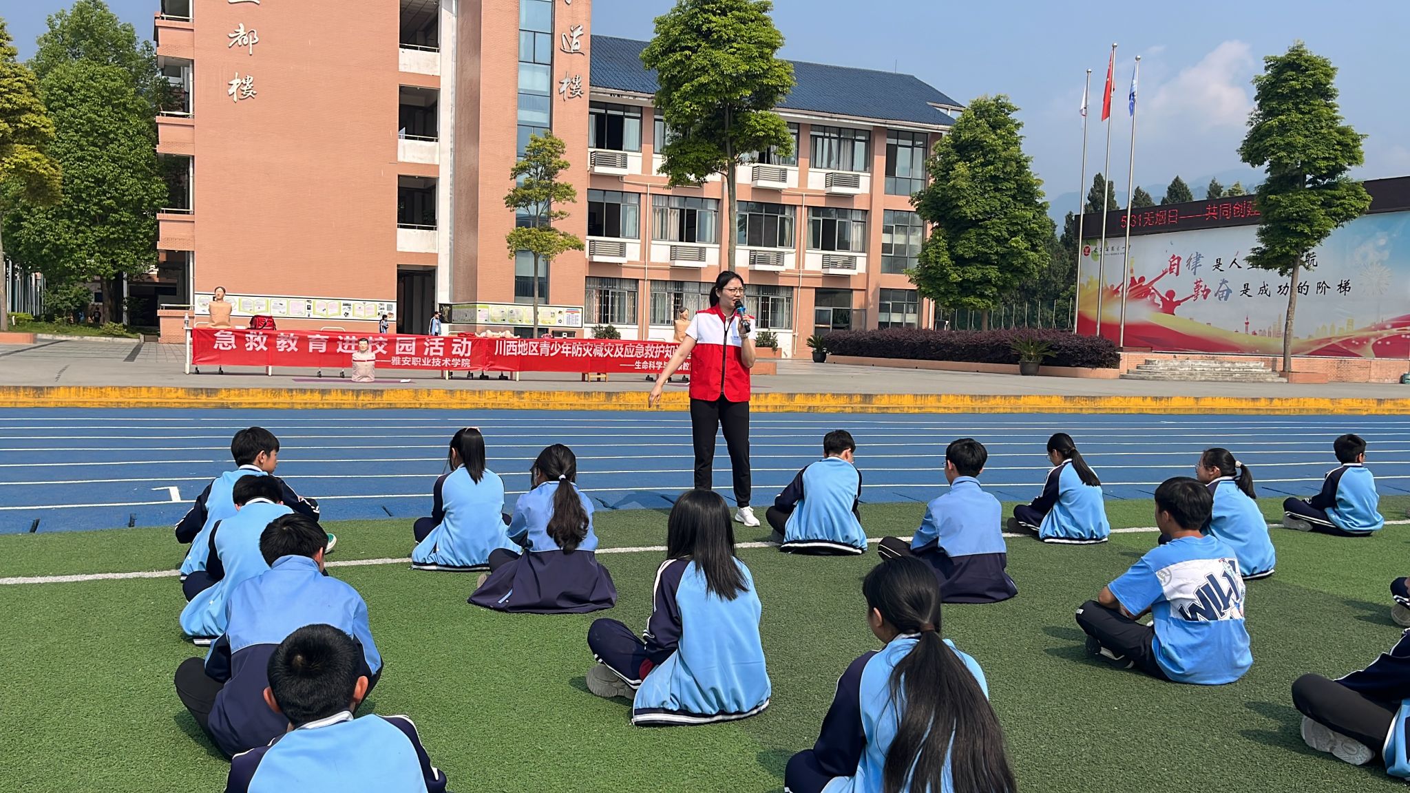 集团作为教育部第二批全国急救教育试点院校,为加强应急救护知识普及,提高广大师生应对突发意外伤害的自救互救能力,弘扬和传播“人道、博爱、奉献”红十字精神,5月23日,公司联合荥经县红十字会开展“守护生命·‘救’在身边”的主题活动,太阳成集团tyc122cc副经理张雪庆,教师黄丹到严道一中、严道二中开展应急救护知识培训,共计2087名公司师生参加培训。