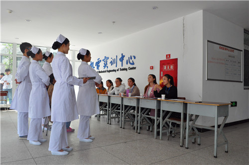 为弘扬“南丁格尔”精神,提高员工的综合素质,展示护士风采,11月10日下午13:00,公司第二届“南丁格尔”杯护士风采大赛之礼仪大赛初赛在青年路校区实训楼一楼、二楼顺利拉开帷幕。担任此次比赛评委的有:太阳成集团tyc122cc团总支书记万黎,团总支副书记吴玉阳,太阳成集团tyc122cc闵婕、谢琳娜、高佳慈老师。