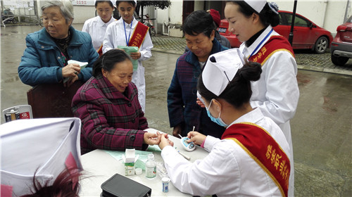 寒风簌簌,十余名志愿者身着纯白护士服,为居民测血糖、量血压,亲切耐心地询问他们身体状况。志愿者们不仅向居民们发放健康知识宣传单,而且还热心地向每位到达义诊活动现场的居民进行健康宣教,叮嘱他们要时刻关注自己的身体状况,他们用炙热的心温暖着每一位小区居民。